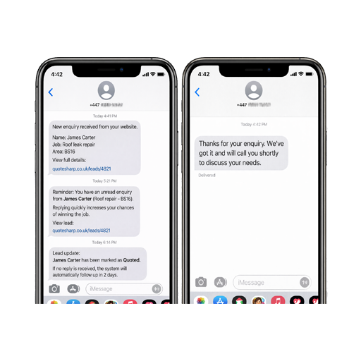 Receive a text message the moment a customer submits an enquiry. Respond faster than competitors and secure the job before anyone else.