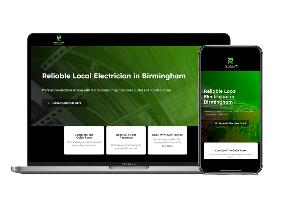 A dedicated landing page designed to turn visitors into real enquiries. Clear services, simple quote forms and a layout built specifically for trade businesses.